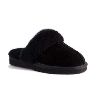 Aus Wooli Unisex "Sydney" Australia Sheepskin Wool Slippers, Black Leather Size UK 4