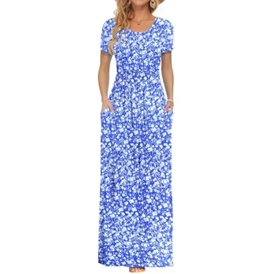 AUSELILY Maxi Dress for Women Summer Casual Long Dresses Ladies with Pockets Blue Ditsy Print M