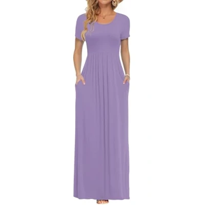 AUSELILY Maxi Dress for Women Summer Casual Long Dresses Ladies with Pockets Light Purple L