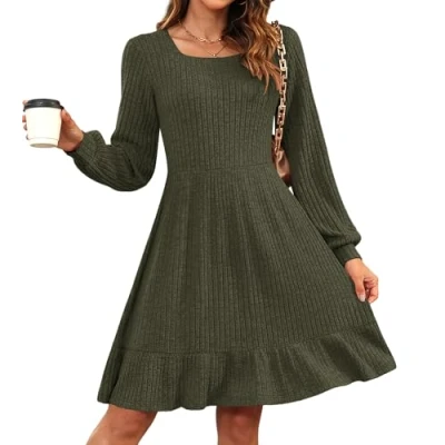 Material: This women's knitted dress is made of 70% polyester, 25% rayon, and 5% spandex, which is soft, skin-friendly, and elastic, and does not pill or deform easily Design: Long sleeves, ruffles, U-neck, A-line silhouette—these design highlights make this fall jumper dress a must-have for your wardrobe. You're sure to love our women's dresses Easy to match: This women's jumper knitted dress can be paired with long coats, leather jackets, down jackets, etc., as well as long boots or high heels, to keep you warm and stylish throughout the fall and winter Occasion: Whether it's for daily commuting, weekend dates, or travel, this autumn winter jumper dress is perfect for any occasion and is a must-have item for Christmas gifts Recommendation: Hand wash or gentle machine wash recommended. Do not bleach. Please refer to the AUSELILY size chart to select the appropriate size for you