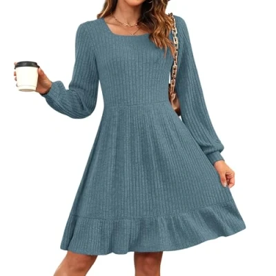 Material: This women's knitted dress is made of 70% polyester, 25% rayon, and 5% spandex, which is soft, skin-friendly, and elastic, and does not pill or deform easily Design: Long sleeves, ruffles, U-neck, A-line silhouette—these design highlights make this fall jumper dress a must-have for your wardrobe. You're sure to love our women's dresses Easy to match: This women's jumper knitted dress can be paired with long coats, leather jackets, down jackets, etc., as well as long boots or high heels, to keep you warm and stylish throughout the fall and winter Occasion: Whether it's for daily commuting, weekend dates, or travel, this autumn winter jumper dress is perfect for any occasion and is a must-have item for Christmas gifts Recommendation: Hand wash or gentle machine wash recommended. Do not bleach. Please refer to the AUSELILY size chart to select the appropriate size for you