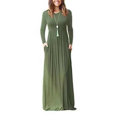 AUSELILY Women's Casual Long Sleeve Maxi Dress Loose Dresses with Pockets Army Green XXXL