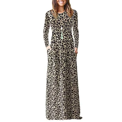 AUSELILY Women's Casual Long Sleeve Maxi Dress Loose Dresses with Pockets Leopard XXXL