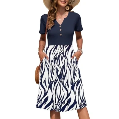 Material: This summer dress for women UK is made of 90% polyester and 10% spandex, the fabric is soft and breathable, and it is not easy to wrinkle Elegant and practical design: Knee-length, empire waist, and pleated hem showing your elegant temperament, buttons add fashion sense, double-side pockets meet your daily needs Occasion: Wearing this summer short-sleeved dress is very comfortable, suitable for daily wear, work, shopping, vacation, etc. Matching: You can easily match this short-sleeved button dress with cape jewelry, sandals, high heels, and even sneakers to complete your fashionable outfit UK size: S(8-10), M(12-14), L(16-18), XL(20-22), 2XL(24-26)