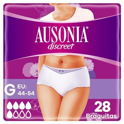 Ausonia Discreet Incontinence Panties for Urine Losses feature RapidDry and OdourLock technology and comfortable design Double LeakGuards Barrier Helps Avoid Urine Loss Flexible core for optimal comfort Feminine design; soft as cotton for optimal comfort OdourLock technology neutralizes odors instantly and continuously; lightly scented