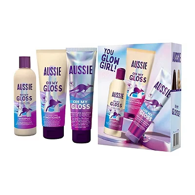 Aussie Oh My Gloss Hydrating Giftset: Shampoo, Conditioner, Leave in Serum