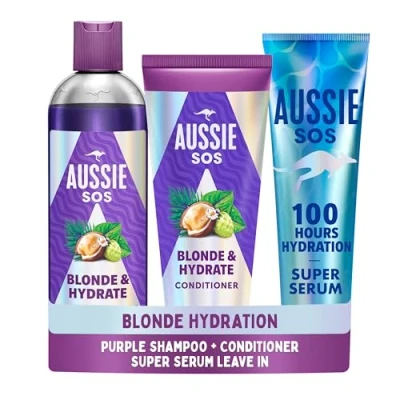 Aussie SOS Blonde & Hydrate Set: Purple Shampoo 300ml, Conditioner 200ml and Super Serum All In One Leave Treatment 160ml