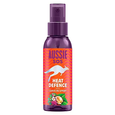 Aussie SOS Heat Defence Leave-In Spray protects hair from heat up to 230¬C and provides hydration for up to 100 hours. Lightweight, vegan, and infused with Australian macadamia oil, it detangles and nourishes without residue.