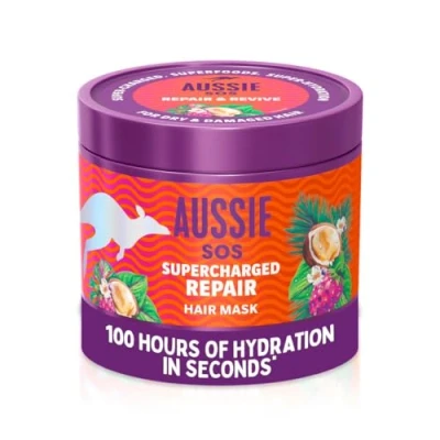 Aussie SOS Supercharged Repair hair mask with authentic Australian botanical ingredients For damaged hair in urgent need of rescue Aussie is recognized cruelty free by PETA SuperFoods, Super-Charged, Super-Hair This hair mask is vegan (vegan formula: without animal derived ingredients or bi-products)