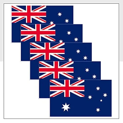 Australia Flag Stickers Pack of 5 (60 x 36 mm) Waterproof AUS Labels for Windows Bike Car Fridge Packwith® #P1191