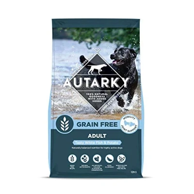White fish and potato is a grain free and hypoallergenic complete dog food which features a joint care package made up of olive extract, green lipped mussel, marine algae and glucosamine to give active dogs the support they need 27 percent protein, 13 percent fat, naturally balanced energy levels for working and highly active dogs Packed with natural antioxidants and beneficial herbs to support the immune system and loaded with prebiotics to look after digestion Wheat gluten and soya free making it suitable for dogs with sensitivities and allergies to reduces chances of skin and digestive issues; the diet also includes zinc and B vitamins to promote a healthy coat and skin All autarky dog food diets offer 100 percent natural goodness with added herbs, which makes the dry dog food highly palatable whether sampled dry or soaked with water or gravy