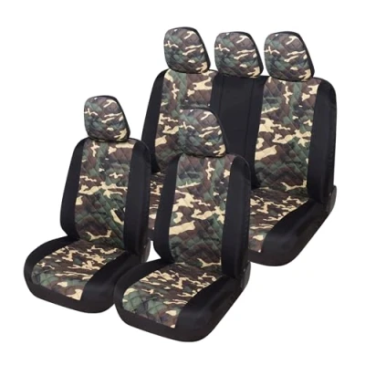 Auto Accessori Lupex A23 Universal Car Seat Covers, Front and Rear (Full Set Bicolour, Camouflage Green)