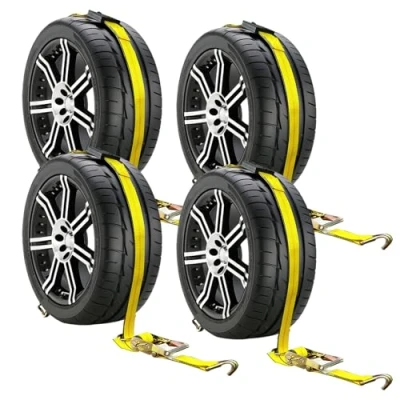 FUNCTIONALLY EFFECTIVE DESIGN: Car tie down straps with 3 sliding rubber blocks that allow for appropriate placement, grip and locking of tire in position, car trailer tie down straps 3 swivel j hooks that offer hassle-free and easy attachment to the trailer, and 1 wide handle Wheel straps, this is one of the most reliable tire straps solution BUILT TO LAST: car tie down straps for trailers heavy duty is designed with industrial grade polyester webbing, tire straps using tough abrasion edge to added car hauler straps protection against wear and tear for maximum strength and durability SAFE AND COMPLIANT: Tire straps for a car trailer safe working load of 3,333 lbs. 10,000lb break strength safe working load is stamped on the warning tag of each tire tie down straps for easy inspection. all auto hauler straps meet specifications WIDE RANGE OF USES: Car straps use for tie down straps, atv,trucks,cargo,utv tie down straps over the wheel,we have specialized in manufacturing automobile ratchet straps for more than ten years. hauling industry preferred tie down solution is a must for you if you are looking for safe ways of transporting vehicles Customer Service and After-Sales Protection: Autofonder very trusted brand. If you have any problems when you use car tie down straps please In time contact our, We have been focusing on the quality and technical improvement of tie down straps, Your satisfaction is our pursuit