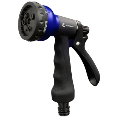 7 Adjustable Watering Patterns: The AUTOMAN Hose Pipe Spray Gun features 7 distinct watering patterns, each designed for specific tasks such as garden care, lawn maintenance, and more. Easily switch between settings by twisting the Hose Nozzle to perfectly tailor your watering experience. Sturdy and Lightweight Material: Constructed from high-quality ABS and TPR, this Garden Hose Spray Gun is not only robust but also ultra-lightweight. Enjoy a comfortable grip with its anti-slip design and ergonomic rubberized pistol grip, making it easy to handle during extended use. Universal Fit for All Standard Garden Hoses: This hose spray gun effortlessly connects to any standard garden hose. Equipped with a quick-connect male connector, it creates a watertight seal to eliminate leaks and prevent water waste. Convenient Lock Bar Feature: The AUTOMAN Hose Nozzle includes an innovative lock bar at the top of the handle, allowing water flow to remain on without continuous pressure. This feature provides relief to your hand, making long watering sessions effortless and enjoyable. Versatile Hose Pipe Spray Gun: The AUTOMAN Hose nozzle is designed for a wide range of tasks, making it an essential tool for every home and garden. Whether you're watering plants, washing your car, or showering pets, this Garden Hose Spray Gun adapts to all your needs., Manufacturer: Automan Pro