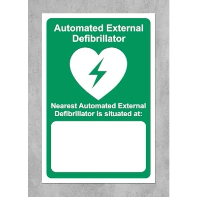 Automated External defibrillator Nearest AED is situated at Blank Safety Sign 1mm Plastic (200mm x 150mm)