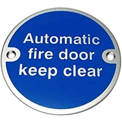 Automatic Fire Door Keep Clear Sign 75mm Diameter Satin Anodised Aluminium (ARC.68A)