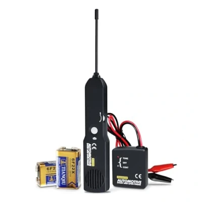 Accurate Wire Tracing: This automotive short and open finder tool enables precise identification and tracing of wires or cables without damaging their insulation; It allows you to locate wires even in hard to reach areas such as bundles; conduits and behind panels Versatile Troubleshooting: With this tool; you can efficiently check for short circuits and locate open circuits in automotive wiring systems; It is designed to help you diagnose and troubleshoot electrical issues with ease Convenient Wire Identification: The set includes a sender and a receiver; equipped with a flexible probe that allows you to trace wires and identify them accurately; Whether you need to label wires or verify connections; this tool simplifies the process User Friendly Operation: Using this tool is straightforward; Simply connect the transmitter in series with the circuit or wire under test and scan the circuit with the receiver's flexible probe; The adjustable sensitivity ensures effective tracing in various situations Non-Intrusive and Safe: This tool employs non contact technology; eliminating the need for wire piercing; It operates on DC voltages not exceeding 42 volts and is internally protected against power surges and overloads; ensuring safe and reliable operation