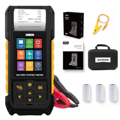 【Lithium Battery Testing】The newly upgraded automotive battery tester BT960 not only supports the testing of lead-acid batteries, but also lithium batteries. Lead-acid battery support types include regular batteries, GEL batteries, AGM flat batteries, AGM spiral batteries, EFB batteries and so on. Lithium batteries support types including LiFePO4, LiPoPolymer, Li-ion ternary, etc. 【Professional Battery Tester】The AUTOOL BT960 battery tester provides comprehensive test for 12V 24V batteries ranging from 30-2000 CCA. This battery load tester accurately measures battery state(SOH), starter state, cranking voltage & time, CCA, charge state(SOC), no-load/loaded voltage and current leakage. 【Safety Performance】BT960 features misconnection protection and is equipped with insulated test clips, ensuring that even if the positive and negative terminals are connected incorrectly, neither the tester nor the battery will be damaged. Battery tester includes various common battery models and specifications, allowing for comparison and analysis of actual test results against standard values to accurately assess battery issues. 【Flexible & Comprehensive】 3 types of tester power supply, based on the traditional connection battery power supply, upgraded with 4 dry batteries and type-C interface external power supply.The data review function allows you to view historical test records and supports printing.Featuring a newly colorful LCD screen, the car battery tester provides intuitive test results in any lighting condition. 【Widely Used 】BT960 battery tester provides accurate and reliable test results for a wide range of vehicles, including cars, motorcycles, trucks, RVs, ATVs, SUVs, caravans, motorhome, boats, yachts, lawn mowers, and more, making it suitable for home use, DIY enthusiasts, and automotive repair shops. 【Three Years Warranty】For any quality problems. If BT960 has any defect, we will provide new replacement or solutions for our customers until satisfaction without delay, and provides lifetime technical support. For any needs, you are warmly welcomed to contact us and we will get back to you ASAP within 24 hours.