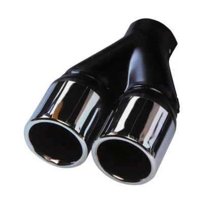 AutoStyle Exhaust finisher Steel/Chrome 2x round 70mm length 200mm >50mm connection