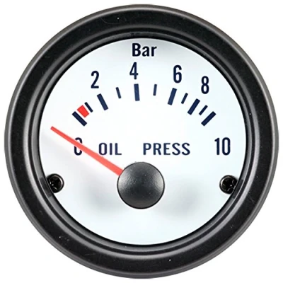 52 mm performance gauge with clear analogue display and halogen lighting Timeless retro design that enhances any dashboard style Can be combined with other AutoStyle performance gauges in white or black Universal fit for most cars, motorcycles, trucks and boats Performance Instrument White Oil Pressure 0-10 bar 52mm