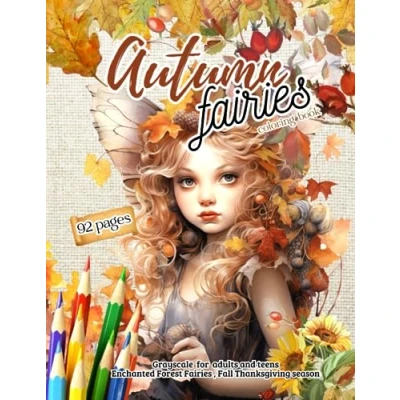 Autumn Fairies coloring book for adults, Enchanted Forest Fairies: Fall Thanksgiving season grayscale teens