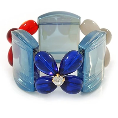 Avalaya Blue, Red, Cream Floral Resin Stretch Bracelet up to 20cm L