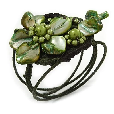 Avalaya Olive/Green Shell Bead Flower Wired Flex Bracelet Adjustable