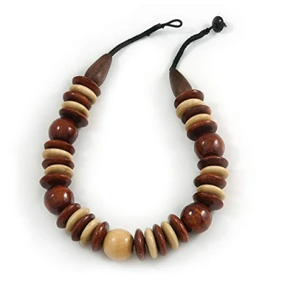 Avalaya Statement Brown/Natural Round and Button Wood Bead Necklace 56cm L