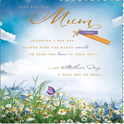 A High Quality Greeting Card and Envelope From Avant Garde Designed and made in the UK - supporting British jobs Caption: Mum Description: Daisy Field With Butterfly Approximate size: 10 x 7 inches