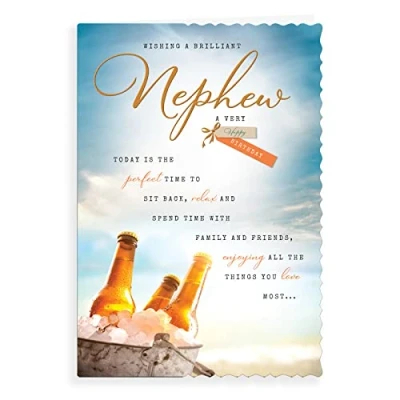 A High Quality Greeting Card and Envelope From Avant Garde Studios Designed and made in the UK - supporting British jobs Caption: Nephew Description: Beers Approximate size: 9 x 6 inches
