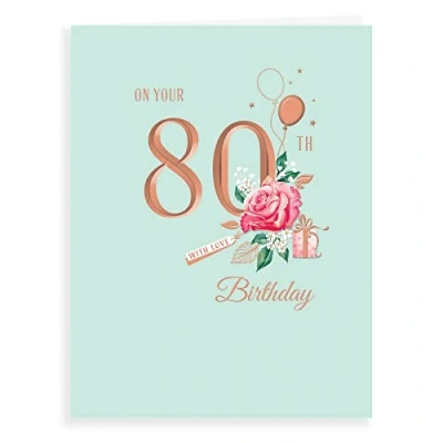 A High Quality Greeting Card and Envelope From Avant Garde Studios Designed and made in the UK - supporting British jobs Caption: Age 80 F Description: Flowers on mint Approximate size: 8 x 6 inches