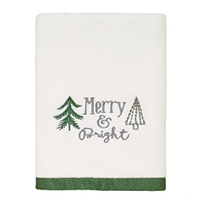 INCLUDES: (1) Hand Towel QUALITY WORKMANSHIP: Constructed from 100% cotton, exclusive of hem and embellishment. The sheared velour finish is soft to the touch, and absorbent as well. OEKO-Tex Standard 100 manufacturing ensures your safety. CARE INSTRUCTIONS: Machine wash warm, Tumble dry low. MIX AND MATCH: Coordinate with other Christmas Trees Collection items such as towels, shower curtains and hooks, rugs and other countertop accessories. GATHER 'ROUND: The Avanti Christmas Trees collection features festive evergreen Christmas trees artistically rendered in different forms. The phrases "Merry & Bright", "Happy Holidays" and "'Tis the Season" add a warm touch.