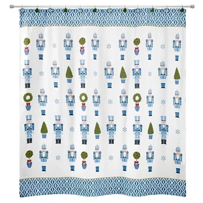 HOLIDAY DECOR: Add a touch of Christmas cheer to your home decor with this nutcracker fabric shower curtain. INCLUDES: (1) Shower Curtain MATERIAL: 100% Polyester EASY-CARE: Machine wash gentle with like colors. Tumble dry low and remove promptly. MIX AND MATCH: Visit our store for other Christmas accessories, such as wastebaskets, towels, toothbrush holders, and more!