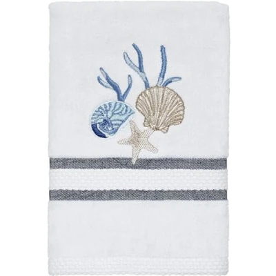 INCLUDES: (1) Hand Towel QUALITY: Made of 100% cotton CARE INSTRUCTIONS: Machine washable, tumble dry low. COLLECTION: Nautically inspired bath collection that combines artistically rendered seascapes and ocean life with Ombre dark navy blue shading. COLLECTION: Coordinate with the Blue Lagoon Collection including matching towels, bathroom accessories and more