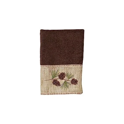 INCLUDES: (1) Hand Towel QUALITY: 100% cotton, exclusive of embellishment. OEKO Tex Standard 100 certified manufacturing for your safety. CARE INSTRUCTIONS: Machine wash warm on gentle cycle with like fabrics. Do not wash with delicates. Tumble dry low, remove promptly. EMBROIDERED: The Pine Branch towel collection recalls a walk on a mountain trail with its intricate pine cone embroidery. A burlap fabric attached hem finishes the Bath and Hand towels. MIX AND MATCH: Complement your towels with any of our other bathroom accessory items from this collection!