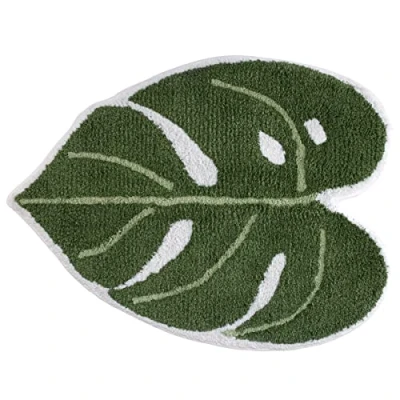 INCLUDES: (1) Bath Rug SOFT AND ABSORBENT: This rug is tufted in 100% cotton for softness and durability. EASY CARE: Machine washable, tumble dry low THE LOOK: Various types of green leaves and foliage, and presents them together with their white-out silhouettes for a collection that is bright and blends with many kinds of modern bathroom décor. MIX AND MATCH: Explore the rest of the Viva Palm collection which includes towels, shower curtain, decorative hooks, wastebasket, and more!