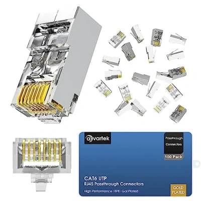 AVARTEK Shielded RJ45 Cat6 CAT6a Pass Through Connectors 100 Pack Ethernet Gold Plated Connector End Plug For Cat6/Cat5/Cat5e UTP Solid & Stranded Network Cable