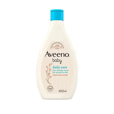 AVEENO Baby Daily Care Hair&Body Wash 400ml is a gentle, tear-free formula enriched with colloidal oatmeal, aloe, and chamomile to cleanse and moisturize newborns’ and sensitive skin. Free from sulphates, soap, and dyes, it helps maintain the skin’s natural moisture barrier for soft, hydrated skin.