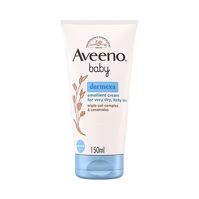Aveeno Baby Dermexa Emollient Cream 150ml is a rich, gentle balm that soothes dry, irritated baby skin instantly and restores the skin barrier in just one week. Formulated with Prebiotic Triple Oat Complex and Ceramides, it’s dermatologist-tested, unscented, and ideal for eczema-prone skin.