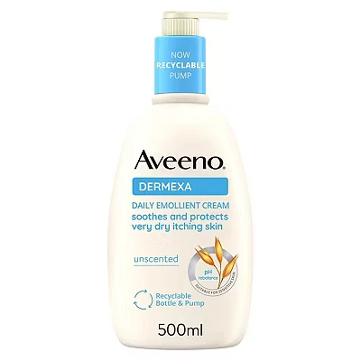 Aveeno Dermexa Daily Emollient Cream (1x 500ml), Enriched with Triple Oat Complex and Ceramides for Sensitive Skin, Soothing Relief from Itchy, Dry Skin Prone to Eczema