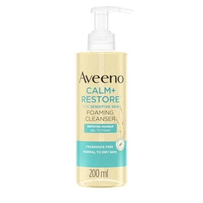 Aveeno Face CALM+RESTORE® Foaming Cleanser, Removes Makeup + Waterproof Mascara, Gel to Foam, For Sensitive Skin, Fragrance Free 200ml