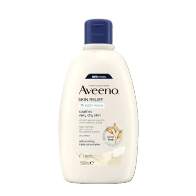 Cleansed and moisturised: This innovative body cleanser is designed to clean the skin gently, removing impurities and dirt without drying out the skin, leaving it soothed and nourished Soothing and nourishing: Formula with soothing Triple Oat Complex. When used as a regimen, AVEENO Skin Relief Body Lotion and Wash help to improve the skin's natural microbiome balance, leaving you with more resilient skin Dermatologist tested: The body wash for dry skin is suitable for very dry, sensitive skin. Its unique formula is 95% biodegradable, vegan*, hypoallergenic**, unscented, and soap-free Application instructions: Massage the Aveeno body cleanser into wet skin and rinse away thoroughly. Complete your routine with Aveeno Skin Relief Moisturising Body Lotion Product details: Aveeno Skin Relief Moisturising Body Wash (1x 500ml), soothing body wash with nourishing Triple Oat Complex, gentle cleansing wash for hydrating very dry, sensitive skin
