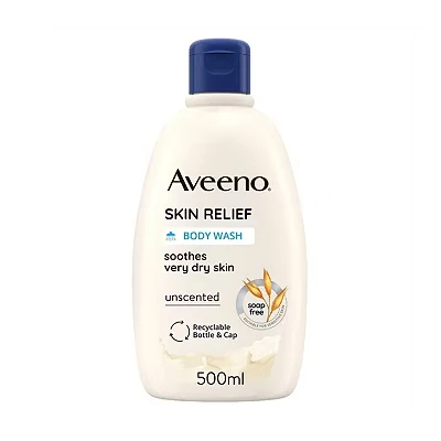Aveeno Skin Relief Moisturising Body Wash (1x 500ml), Gentle Cleansing with Soothing Triple Oat Complex, Soap Free, Unscented for Sensitive and Very Dry