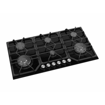 Avelis A609BLK 90cm 6 Burner Black Gas Hob with 2 Dual Wok Burners