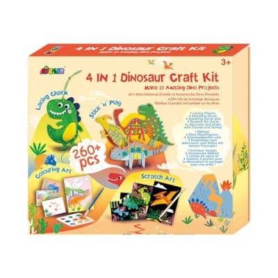 Avenir 4 in 1 Dinosaur Craft Kit Includes Lacing, Scratch Art, Stick 'n' Play & Colouring for Children Ages 3+