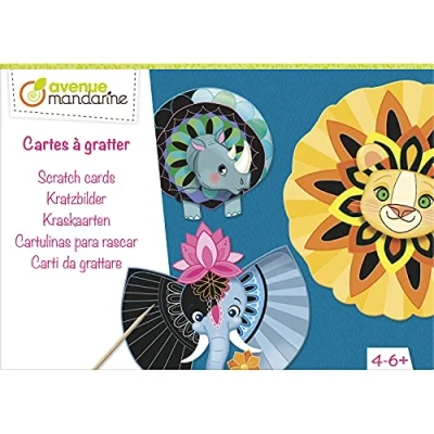 SCRATCH CARD: The Avenue Mandarine version scratch card n's: Simple technique allowing each child to gradually discover the vibrant colours that are hidden under the 4 adorable illustrated animals DECORATION: These cards can then be stuck on coloured frames and displayed on pretty cardboard easels CONTENTS OF THE KIT: 4 sheets of scratch cards 15x21 cm - 4 cardboard supports 15x15 cm - 4 cardboard easels - Sheet of double-sided adhesive foam squares - 1 wooden stylus - Instructions Complies with CE standards VARIED CREATIVE BOXES, FULL OF IDEAS: Avenue Mandarine offers a large collection of creative boxes on different themes: sewing, scratch cards, origami Also find other creative boxes full of ideas! Complete kits, simple instructions that will allow each child to stimulate their curiosity and develop their creativity while having fun Thanks to an easy-to-remove sheath system, each box can then be customized and kept as storage ATTENTIVE TO PRETTY THINGS: Avenue Mandarine accompanies children and parents with elegant and designer edutainment games We offer fresh and current shades, tender illustrations, imbued with sweetness and poetry, to promote discovery, play and the awakening of the senses of children from 2 to 10 years old