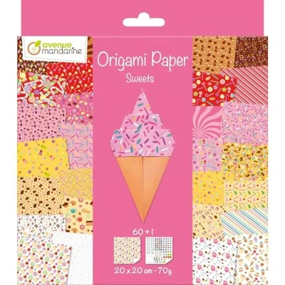 Avenue Mandarine OR522C Origami Paper Pack of 60 Sheets 20 x cm 70 g (30 Designs 2 Sheets) and a Sheet Stickers Included Candy