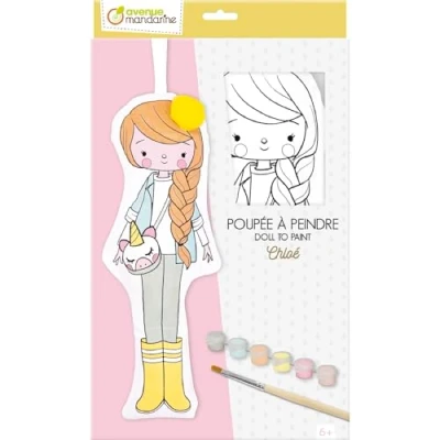 A PRETTY DOLL TO PAINTABLE AND CUSTOMIZE: Chloé is a superb printed cotton doll that your child will enjoy customizing and painting CONTENTS OF THE KIT: The Chloé doll, approximately 29 cm tall, comes with 6 bottles of acrylic paint that will give her beautiful colours, a brush and a pompom to stick in her hair This creative kit is suitable for children from 6 years old Complies with CE standards LEARNING WHILE HAVING FUN: This original kit helps to develop and express children's creativity Always trendy with her colourful look, this doll is ideal for entertaining them while developing their imagination and introducing them to acrylic painting VARIED DOLLS, FOR ALL TASTES: Avenue Mandarine offers children and their parents different dolls to paint, each with their own personalized look, to please each child and allow them to build their own collection ATTENTIVE TO PRETTY THINGS: Avenue Mandarine accompanies children and parents with elegant and designer edutainment games We offer fresh and up-to-date colours, tender illustrations, imbued with sweetness and poetry, to promote discovery, play and the awakening of the senses of children from 2 to 10 years old, Manufacturer: Clairefontaine