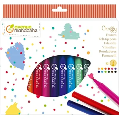 Avenue Mandarine is a French brand of edutainment games belonging to the Clairefontaine Rhodia group Our high quality products meet your requirements to satisfy your children and accompany them in the discovery, play and awakening of their senses Bright colours, blocked mines to avoid damage, machine-washable ink, our classic felt-tip pens allow each child to express their creativity with complete peace of mind Includes 12 assorted colour markers Complies with CE standards