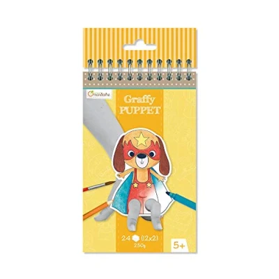 Avenue Mandarine Ref GY010O Graffy Pre Cut Finger Puppets to Colour In & Play Superhero Animals Spiral Notebook, 250gsm Clairefontaine Paper, 24 Cards, 12 Designs